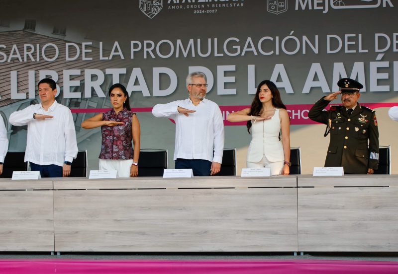 APATZINGÁN, MICHOACÁN. – En el marco del 211 aniversario de la Promulgación del Decreto Constitucional para la Libertad de la América Mexicana, para dar cumplimiento a lo que el Generalísimo Don José María Morelos y Pavón estableció el 22 de octubre de 1814; los Poderes Ejecutivo, Legislativo y Judicial de la entidad se dieron cita para honrar la memoria de los héroes y heroínas que dieron su vida en busca de mejores condiciones.